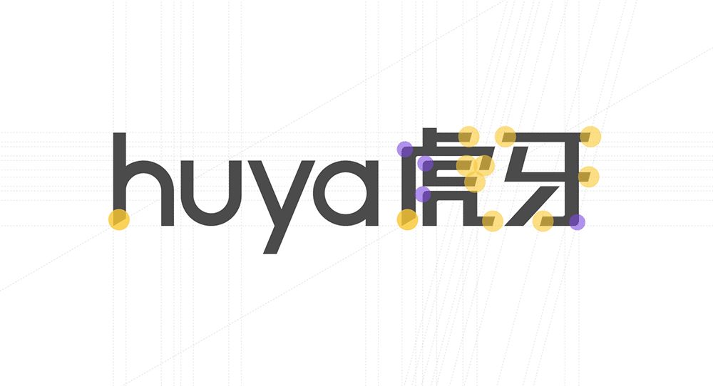 字标则由“虎牙”和“huya”两部分组成,中英文字体为了能够体现超级符号的独特个性,其中部分笔画做了斜切收尾。